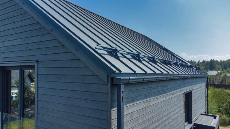 Благодаря толщине 0,5 мм и усиленному замку, панели Кликфальц Pro устойчивы к нагрузкам и не требуют сложного обслуживания. Покрытие толщиной 35 мкм сохраняет равномерный цвет даже спустя годы, а монтаж возможен на скатах с уклоном от 10° — просто, быстро и надёжно.