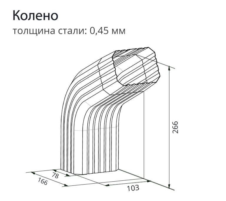Колено водостока GL VORTEX от Grand Line — это элемент, предназначенный для изменения направления потока воды по трубам. Это решение отличается от других своим отсутствием швов и складок, что повышает прочность и долговечность системы в целом. Плотное соединение и простота монтажа делают установку быстрой и удобной, обеспечивая бесперебойную работу системы водоотведения на протяжении многих лет.