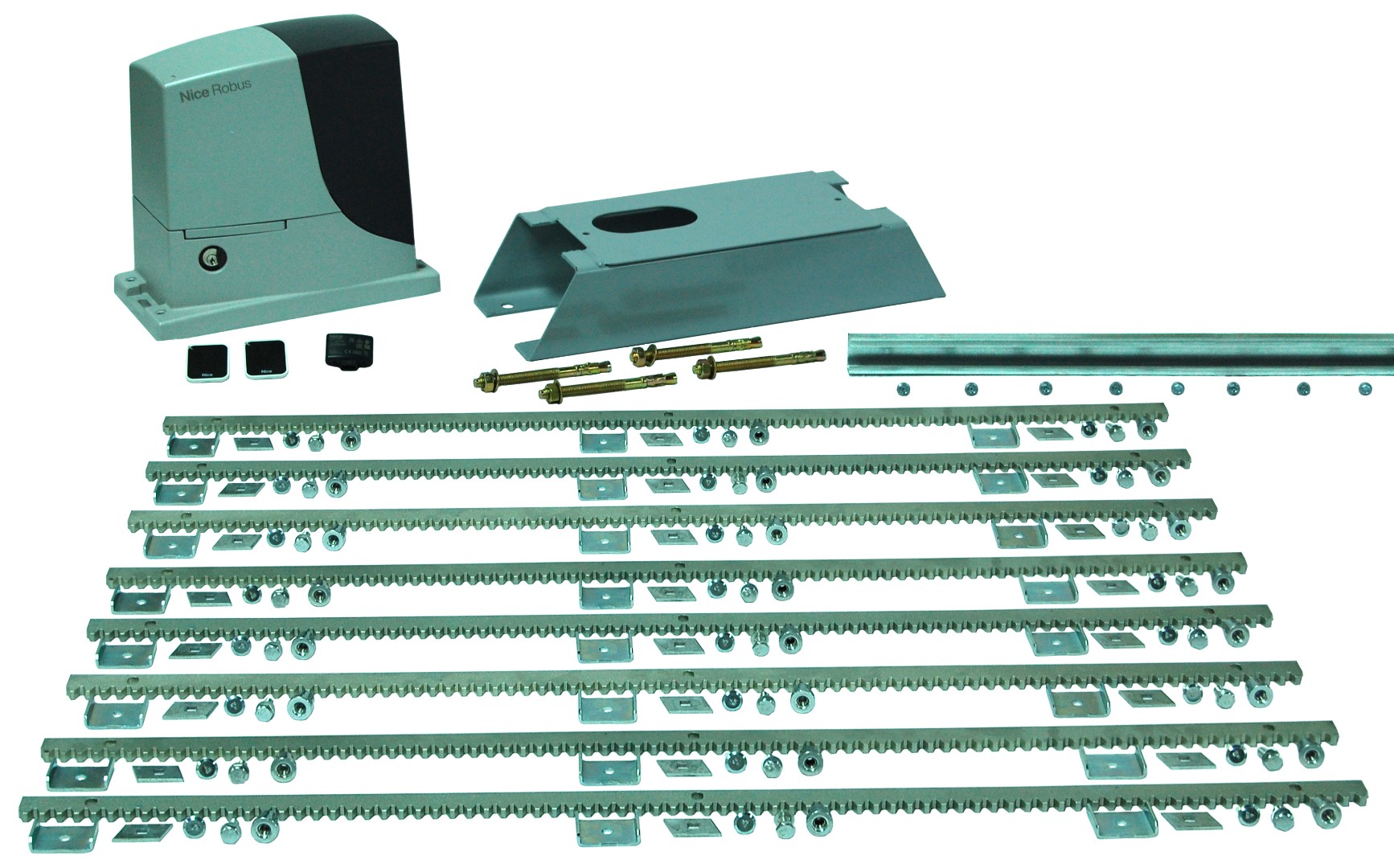Для жаркого климата Краснодарского края, где пыль, влажность и солнечные лучи могут быстро вывести оборудование из строя, комплект автоматизации откатных панельных ворот GL на 7 метров станет надёжным решением. В наборе — привод от итальянского бренда Nice: Road400 для ворот стандартной длины и Robus600 для более тяжёлых конструкций. Также в комплект включены пульты, встроенный блок управления и радиоприемник, а также зубчатая рейка Alutech с крепежом.