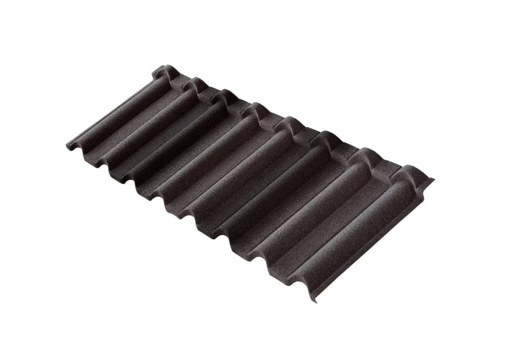 Черепица Gallo уникальна за счет использования базальтовой посыпки, которая придает материалу естественный и органичный вид. В отличие от стандартных полимерных покрытий, базальтовая крошка создает интересную фактуру и эффектный переход цвета, что делает покрытие визуально похожим на традиционную цементно-песчаную черепицу.
