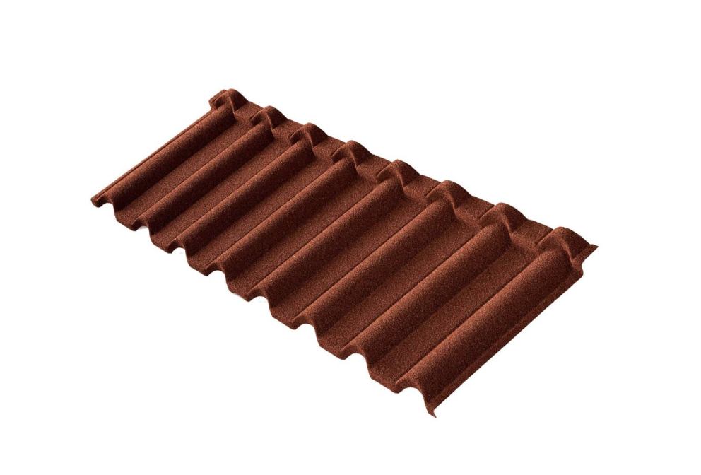 Черепица Gallo уникальна за счет использования базальтовой посыпки, которая придает материалу естественный и органичный вид. В отличие от стандартных полимерных покрытий, базальтовая крошка создает интересную фактуру и эффектный переход цвета, что делает покрытие визуально похожим на традиционную цементно-песчаную черепицу.