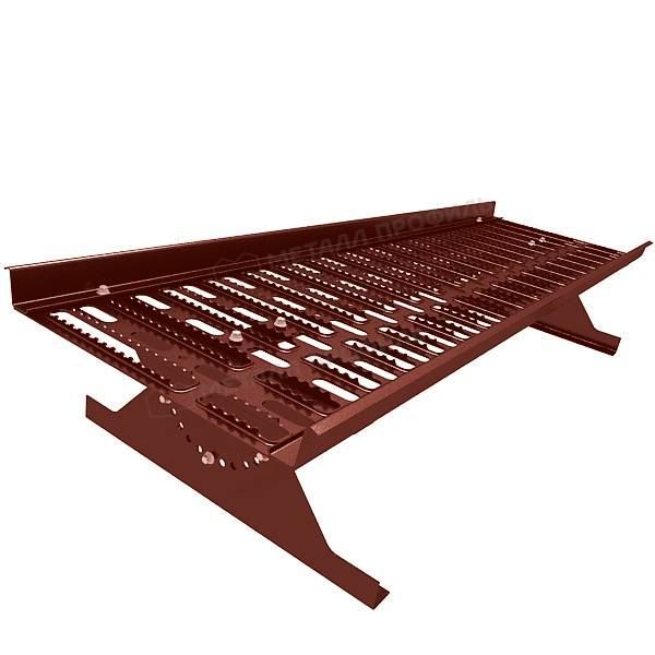 Переходной мостик в красной палитре — идеальное решение для безопасного перемещения по кровле в теплых климатических условиях Краснодарского края. Этот элемент предоставляет удобный доступ ко всем частям крыши, включая дымоходы, вентиляционные системы и антенны, обеспечивая комфортное выполнение любых работ на высоте. Он прекрасно подходит для кровельной черепицы, создавая устойчивую и надежную платформу для перемещения.