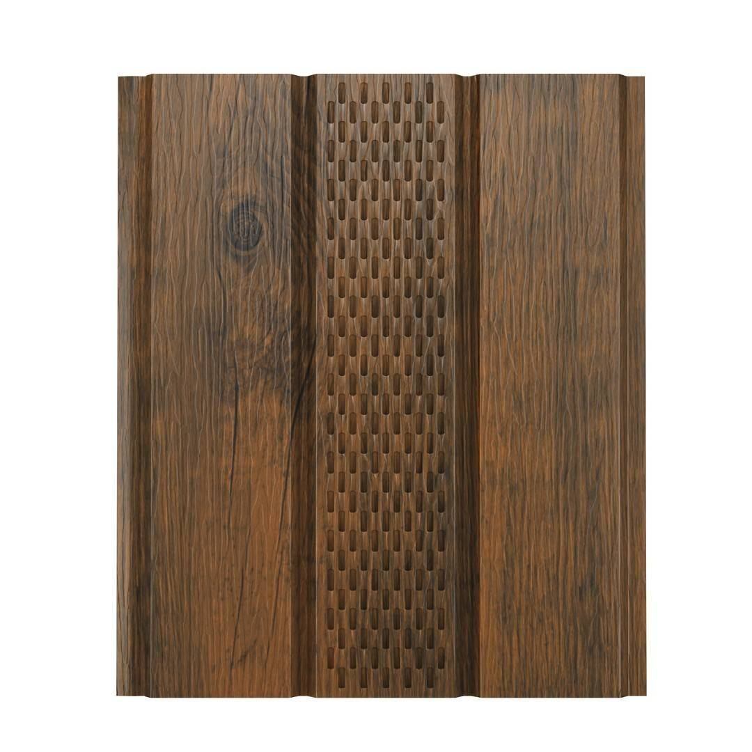 Изделие выполнено из прочной стали с надежным полимерным покрытием и окрашено в оттенок канадский дуб, который гармонично сочетается с различными видами отделки фасада и кровельных материалов. Продукция бренда Aquasystem славится долговечностью, устойчивостью к агрессивным погодным условиям и простотой монтажа, поэтому софит легко устанавливается даже в частном строительстве. Это практичный и эстетичный элемент, который надолго сохранит внешний вид кровли и повысит энергоэффективность всего здания.