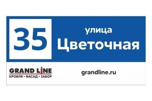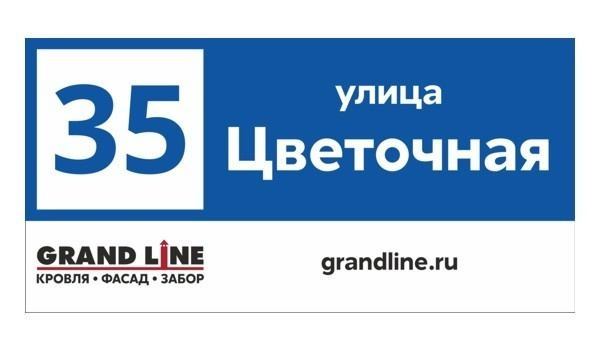 В Краснодарском крае, где большую часть года преобладает активное солнце и повышенная влажность, табличка GL 60×30 см цвета RAL 5005 с логотипом Grand Line сохраняет презентабельный внешний вид даже в самых непростых условиях. Благодаря трёхслойному алюминиевому композиту изделие защищено от коррозии, деформации и выгорания. УФ-печать обеспечивает стойкость изображения, делая адрес читаемым независимо от уровня освещённости.