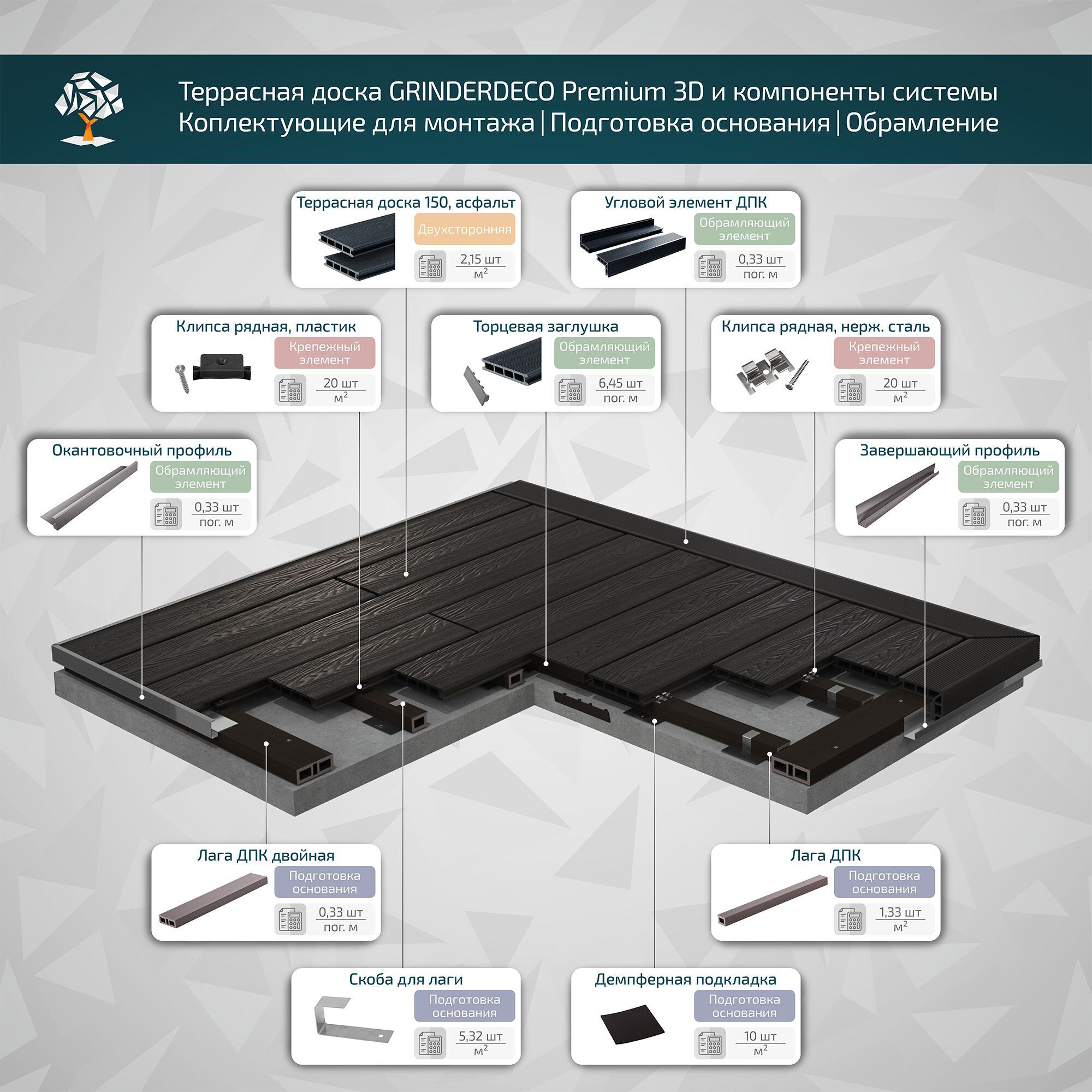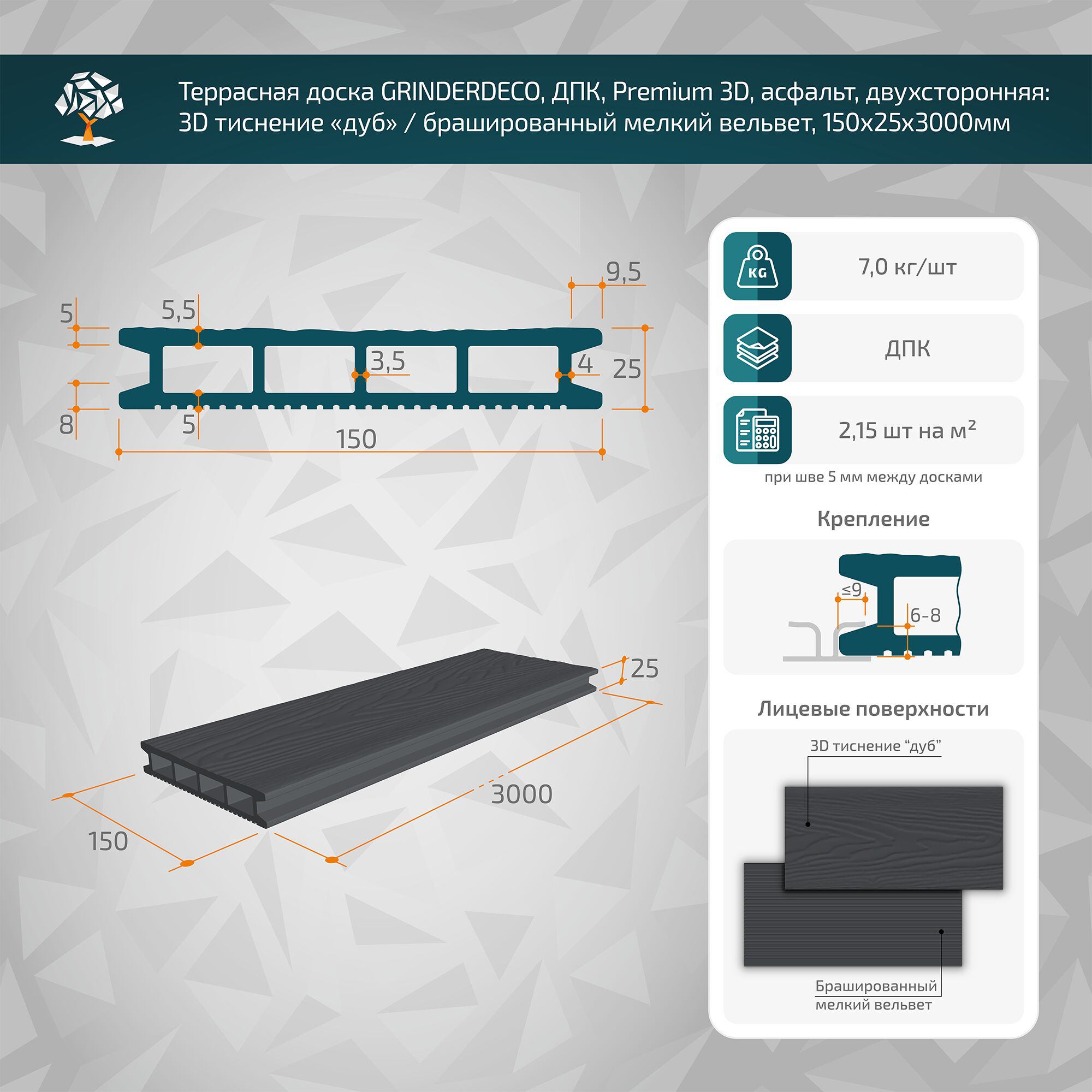 Наша команда оперативно сообщит Вам о снижении цены на Террасная доска GRINDERDECO, ДПК, асфальт, 3D тиснение дуб , 150х25х3000мм в ближайшее время.