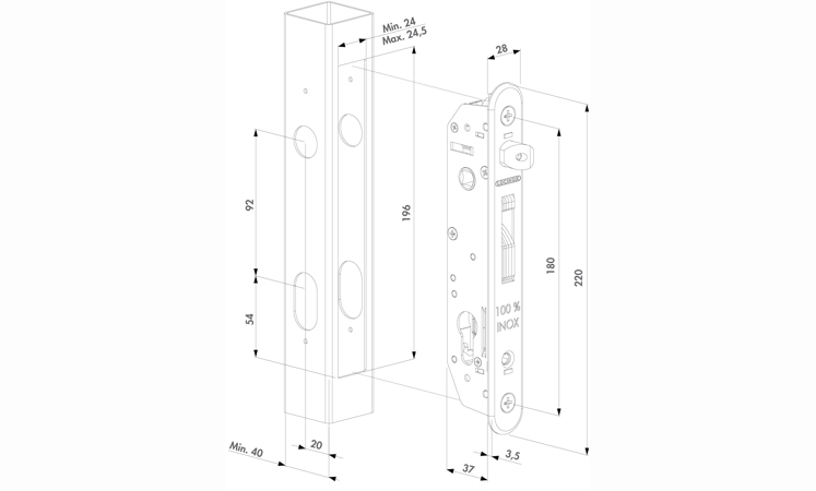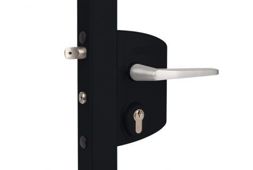 Замок подходит для профильных труб и рекомендован для большинства промышленных ворот. Благодаря универсальной конструкции он может быть установлен на створки с любым направлением открывания, а прочные материалы обеспечивают стабильную работу даже при регулярных нагрузках и воздействии окружающей среды, характерных для Краснодарского края.